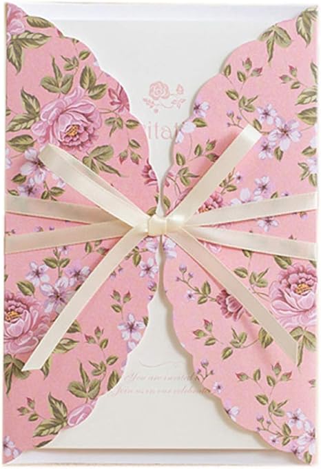 Fuyy Wedding Pink Invitation Card Bow Printable Blank Paper And Envelope Wedding Party Graduation Ceremony Pack Of 50 Pink Amazon Co Uk Sports Outdoors