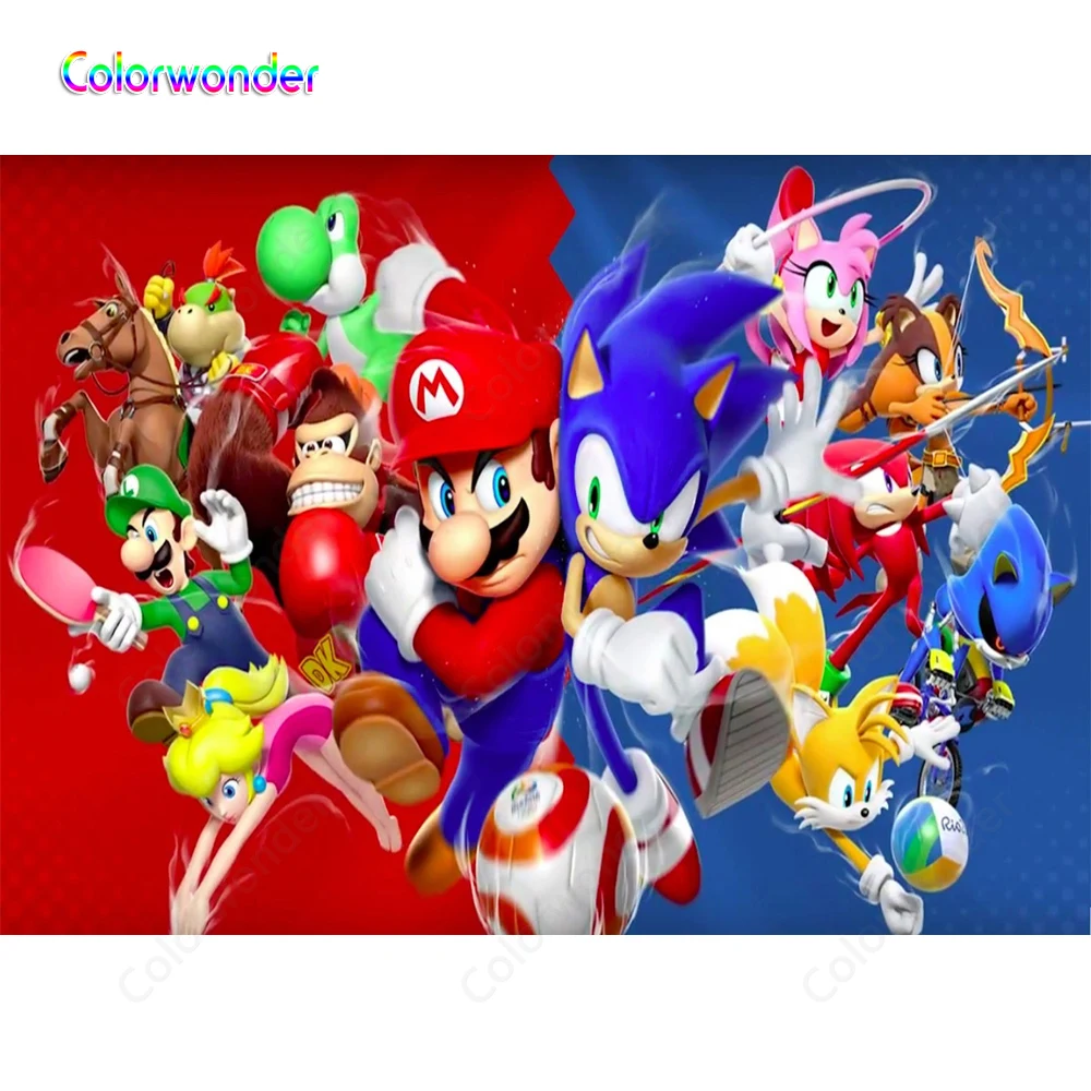 Fondos rojo con azul juego de dibujos animados mundo fotografía carpintero con erizo azul Sonic niños cumpleaños telones de fondo para estudio|Fondo| - AliExpress